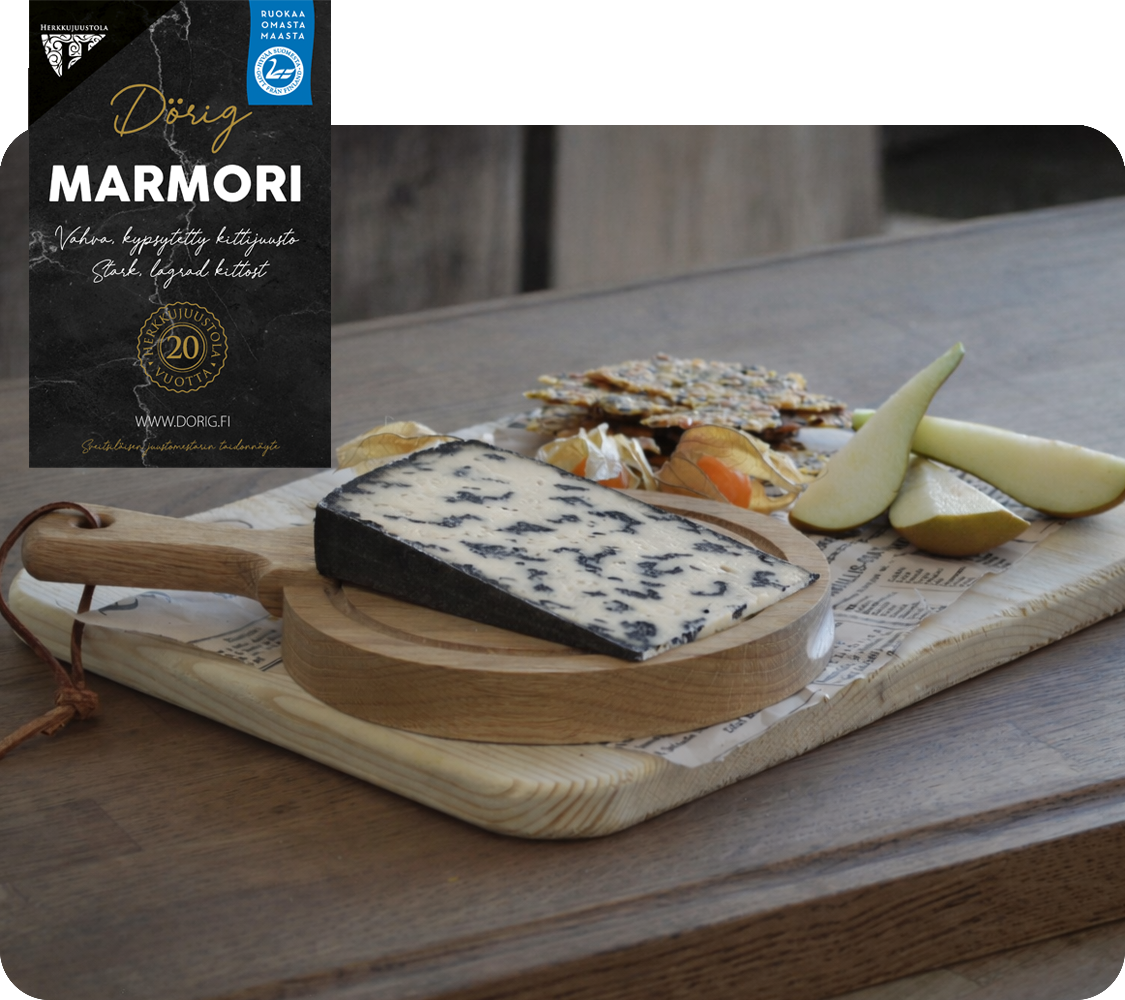 Ein vollmundiger und kräftig gereifter Käse, der mit seinem intensiven Geschmack begeistert. Vilho ist die perfekte Wahl für eine Käseplatte oder zum Kochen, wenn Sie ein intensives Käseerlebnis suchen.